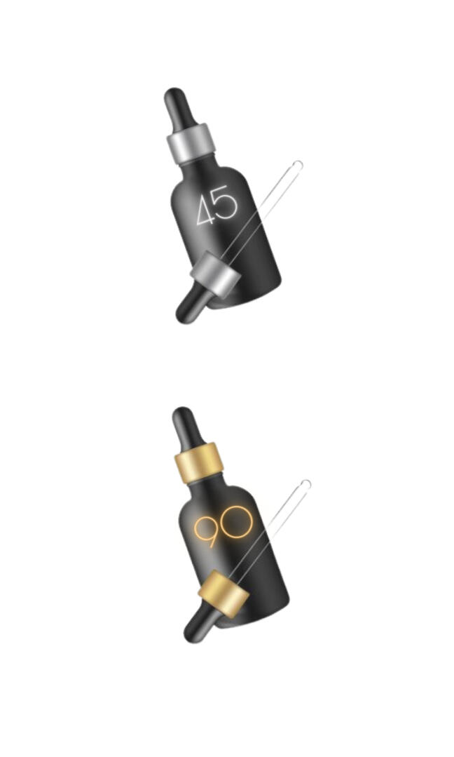 PVC: CHF 90 .- / 150.-PYC Капли меланина, полученные из антарктических дрожжей, симбиотических грибов и фруктов в концентрации 45 или 90 мг./ 10 мл.
